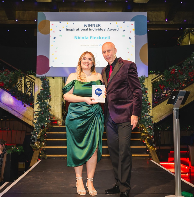 A Hampshire Hospitals staff member has been honoured in a national awards ceremony that recognises the work of inspirational individuals and innovative organisations. Nicola Flecknell, a deputy sister working within acute paediatric services, was selected from over 34,000 WOW! Awards nomination entries, taking home the ‘Inspirational Individual Award’ at a spectacular WOW! Awards ceremony hosted in November. Read the full story here.